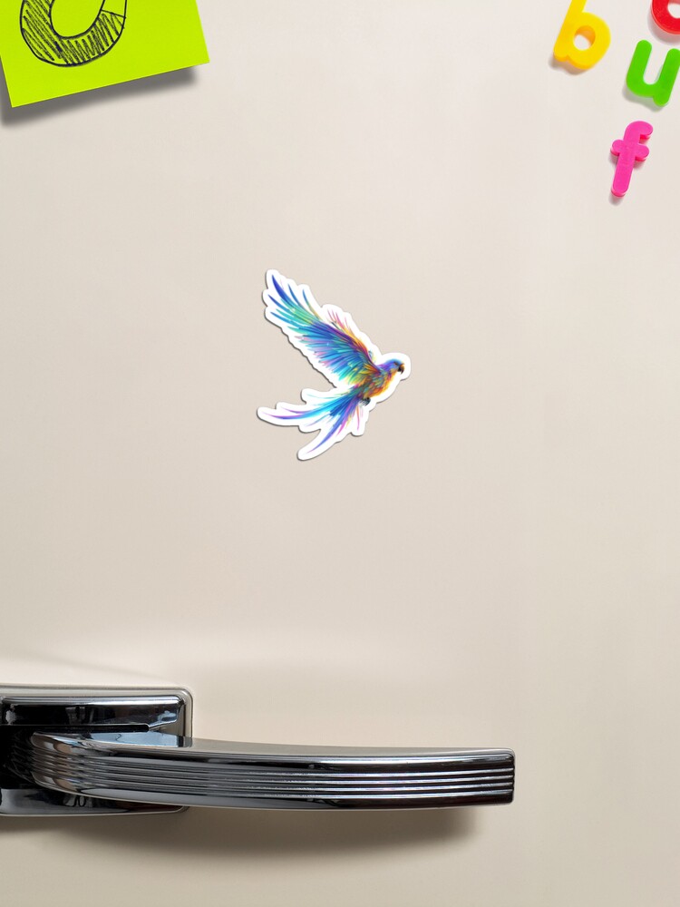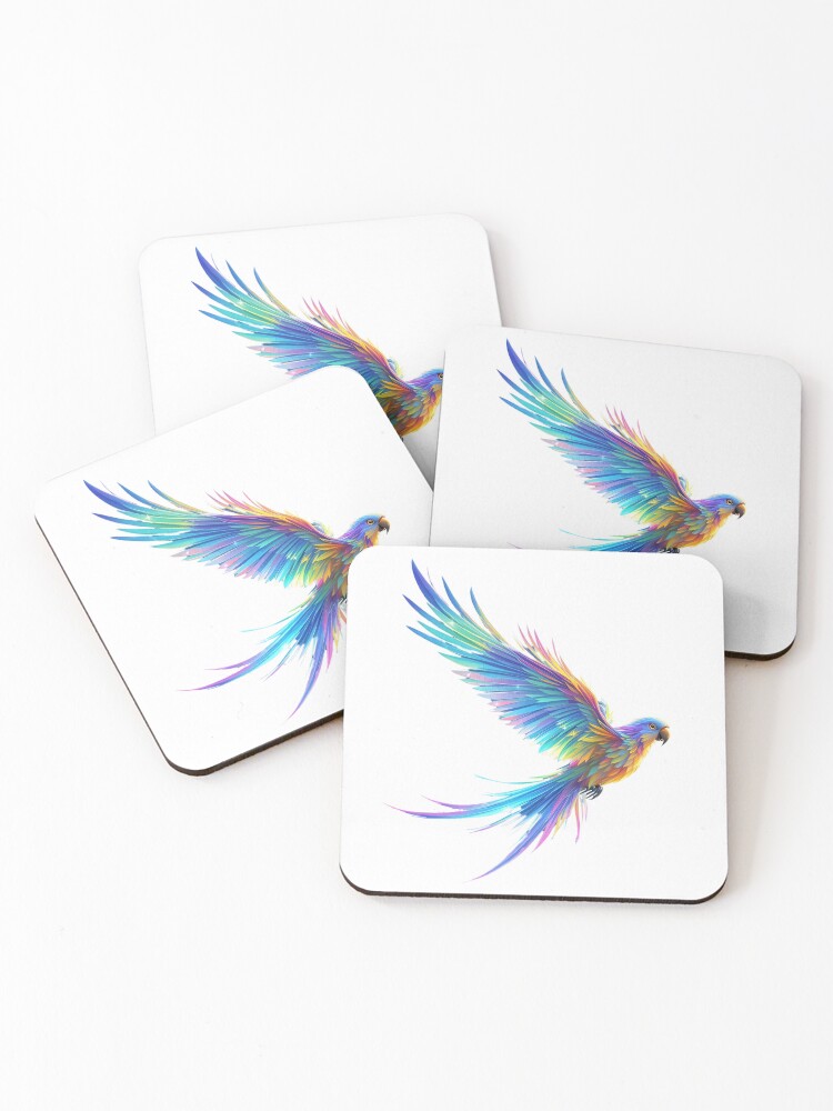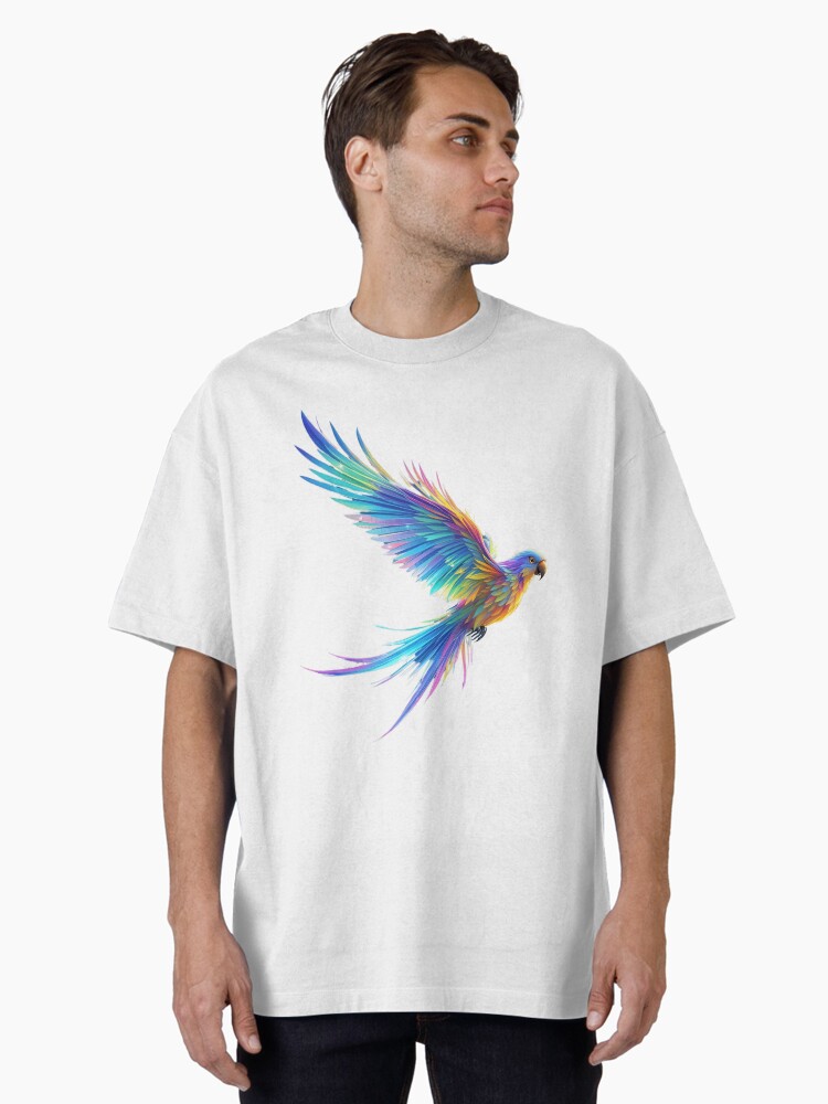 Feel the breath taking energy of the tropics with this vibrant multicolour flying parrot design. Starring a magnificent blueish parrot in mid-flight, this artwork showcases a stunning spectrum of colours rippling through its wings. From deep cobalt and electric blue to splashes of fiery orange, sun-kissed yellow, and emerald green, every feather is a testament to the beauty of wild nature.