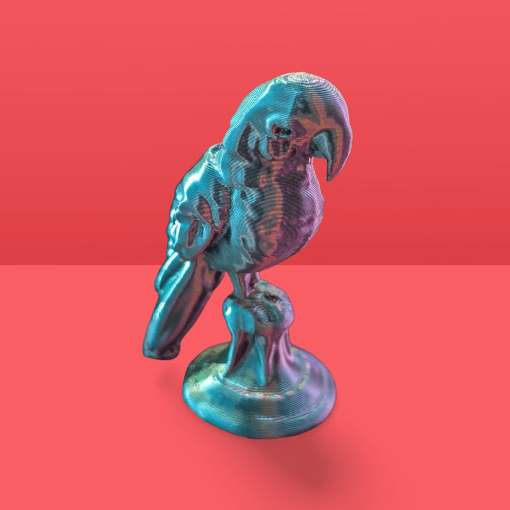 This 3D printed Parrot figurine features a gorgeous silky green coloured parrot that resembles a Macaw.