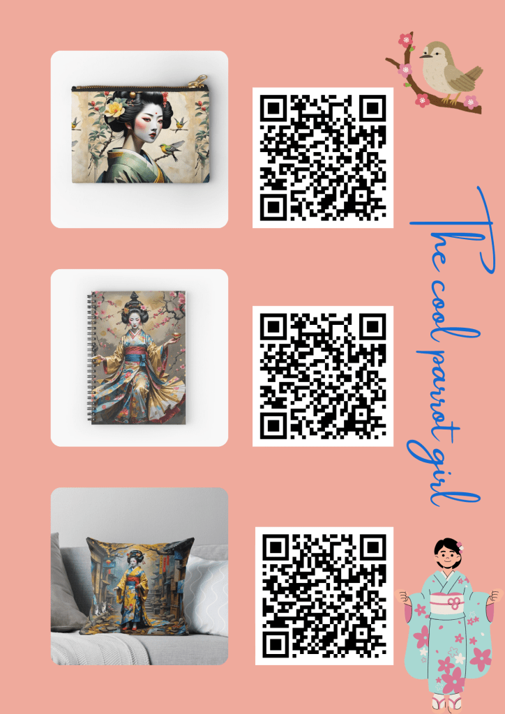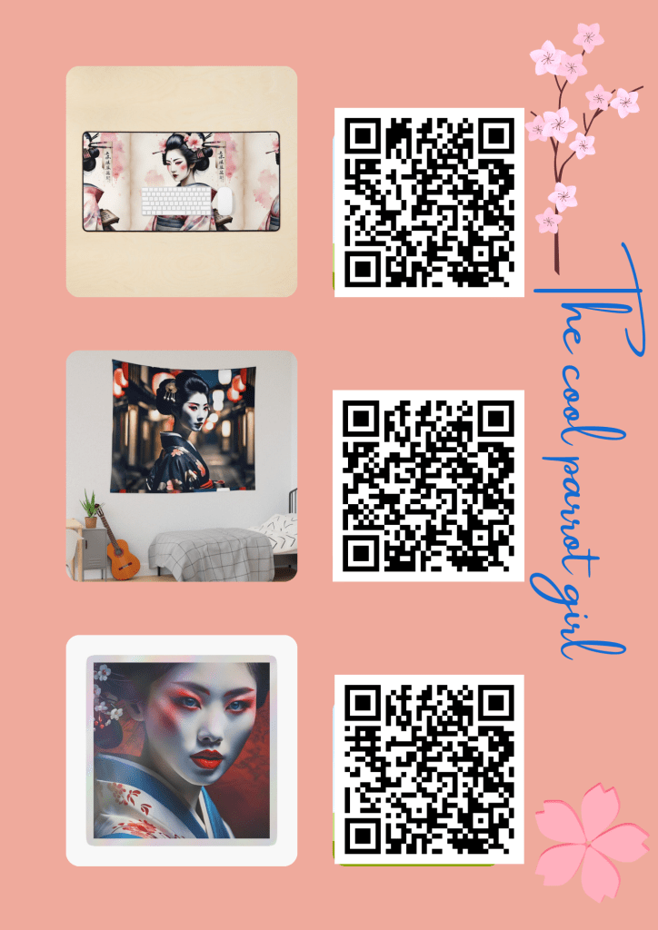 I love all my geisha designs and now I uploaded a few of them on Redbubble. You can order the designs there and on ebay, you can order some of my AI geishas even in high resolution digital downloads.
