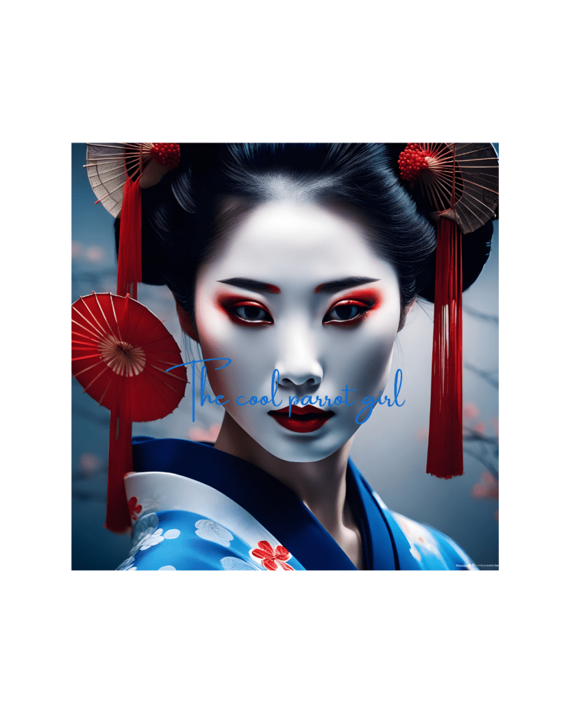 What about a t-shirt of this geisha ai design? She’s in blue silk kimono, mesmerizing eyes, beautiful. What do you think?