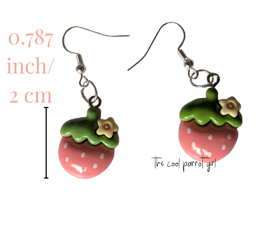 Candy colour cute strawberry earrings, with tiny flower and leaf, available on eBay.