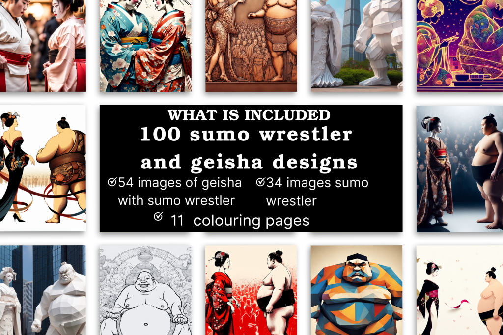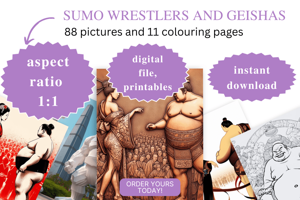 100 Stunning Sumo Wrestlers and Geisha Portraits, now available as an instant download on Etsy.